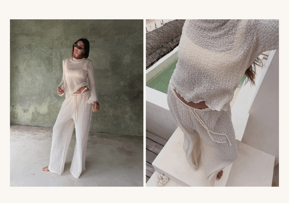 @theeyetravels wears Cream Silkie Bella Top x High Rise Bottom